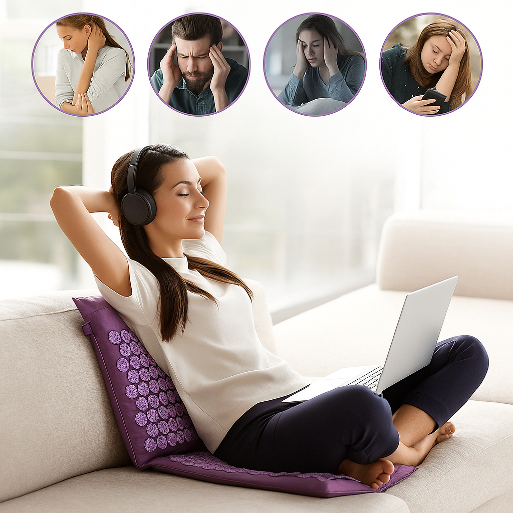Tapis d’Acupression Relaxant avec Coussin – Soulage le Stress, les Douleurs et Favorise le Sommeil