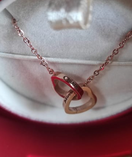 - un collier délicat aux cœurs entrelacés